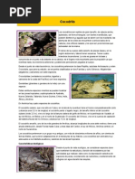 Hay 14 especies entre cocodrilos, caimanes, gaviales y aligtores. Piel escamosa, seca y dura. Viven hasta 50 aos en zonas tropicales de frica, Asia , Centro y Sudmerica y Australia. Tamaos: Hasta los 8,5 metros y 1700 kg (cocodrilo marino) Alimentacin: son depredadores de todo tipos de animales: aves, mamferos, peces, anfibios, etc. Tienen la mayor furza de mordedura con 1800 kg. Ectotrmicos, por lo que se calientan al sol durante el da y se meten en agua por la noche al conservar mejor sta en calor del sol. Ojos y fosas nasales en parte superior de cabeza, por lo que ven y respiran con el cuerpo sumergido. Fecundacin interna. Ovparos con control de sexos mediante temperatura de incubacin. Corazn tetracameral (2A y 2 V). Circulacin cerrada y doble (mayor y menor) Respiracin pulmonar. Aguantan hasta 6 horas sumergidos y en movimiento y hasta 2 das quietos.