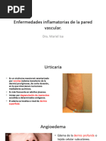 Puede ser localizada, diseminada o generalizada. Lesiones son ronchas o habones, forma y tamao variable, duran minutos o horas. Prurito intenso. Dermografismo o Urticaria Facticia. Son ronchas lineales de forma caprichosa al frotar la piel. 8-10%. Urticaria. 20% curacin espontnea. Edema Angioneurtico, Angioedema Urticaria gigante. Afecta cara y extremidades, predomina en parpados y labios. Puede causar disfunciones respiratoria y gastrointestinales, Puede ser adquirida o hereditaria.