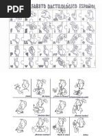 El alfabeto dactilolgico es la representacin manual del abecedario en el espacio. Se utiliza cuando no existe un signo para el elemento o pensamiento que se desea expresar, para los datos personales (nombre, apellidos) o cuando necesitan conocer la escritura correcta de alguna palabra.