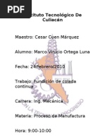 de las piezas metlicas. El proceso de fundicin continua puede realizarse tanto de forma vertical como horizontal.