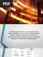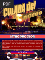 La colada o vaciado es uno de los procesos ms antiguos que se conocen para trabajar los metales, es el proceso que da forma a un objeto al entrar material lquido en una cavidad formada en un bloque de arena aglomerada u otro material que se llama molde y dejar que se solidifique el lquido.