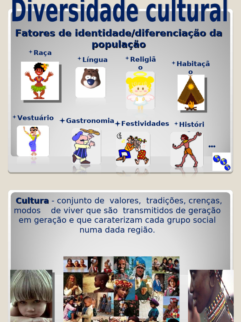 caratersticas nacionalidade. Ex. etnia cigana. Cultura - Conjunto de costumes e tradies transmitidos de gerao em gerao numa determinada regio. Globalizao designao que se deve ao intercmbio econmico e cultural entre diferentes pases, devido ao desenvolvimento dos meios de comunicao, dos transportes e da informatizao.