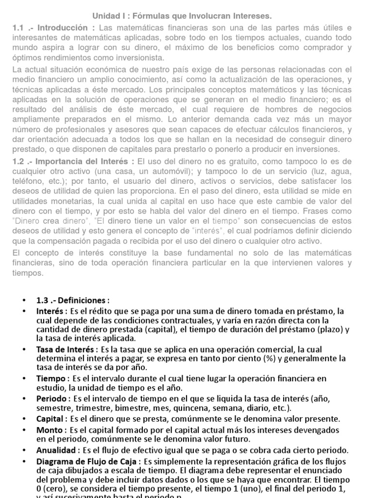 Unidad I : Frmulas que Involucran Intereses.