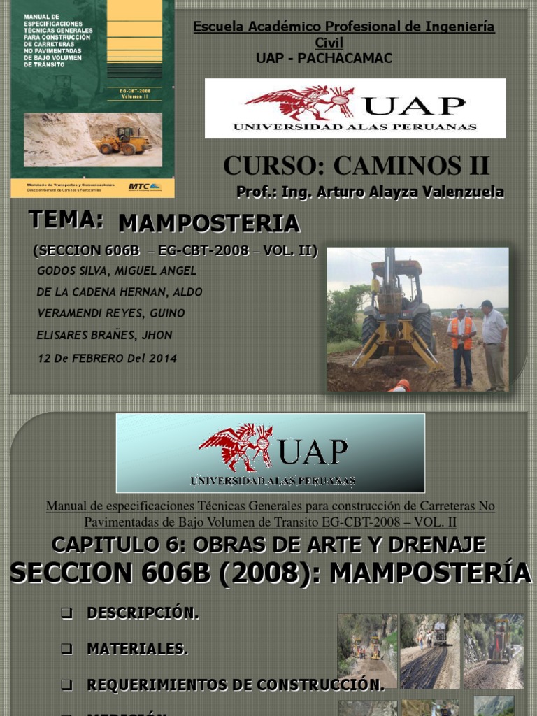 completar la seccin 606B Mampostera, exceptuando la excavacin y el