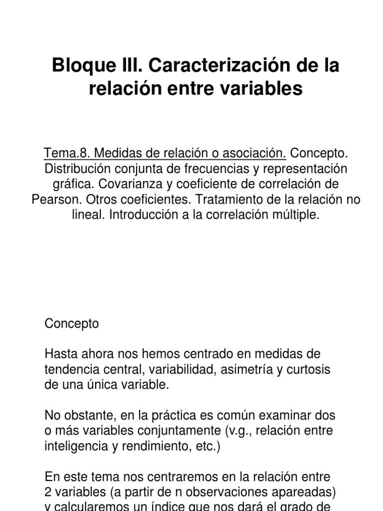 Tema.8. Medidas de relacin o asociacin. Concepto.
