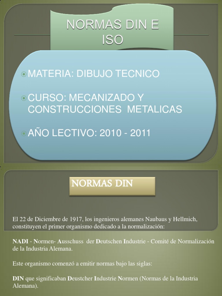 utilizar las normas DIN alemanas, esta es la causa de que hasta hoy en los
