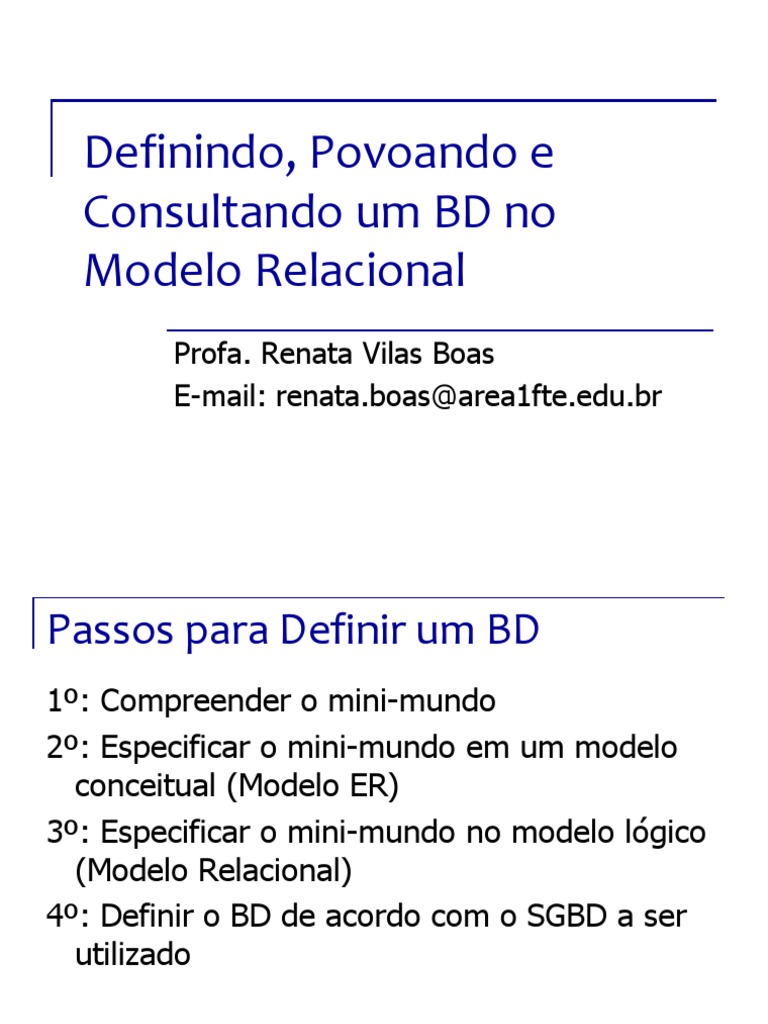 CREATE DATABASE [NomeBD] {Elementos de definio do