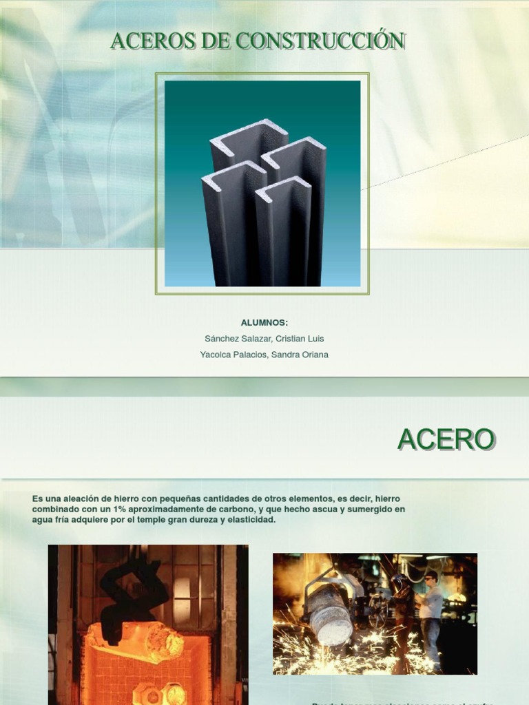 Los aceros de construccin generalmente se emplean para la fabricacin de piezas, rganos o