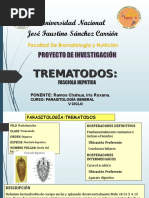 localizados anteriormente a ellos. En los mrgenes laterales estn las glndulas vitelgenas, formadas por finos folculos. Tegumento recubierto por numerosas espinas dirigidas