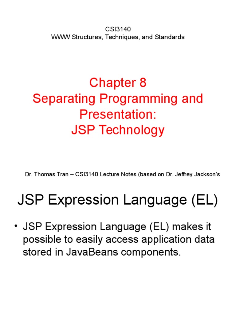 Dr. Thomas Tran CSI3140 Lecture Notes (based on Dr. Jeffrey Jacksons