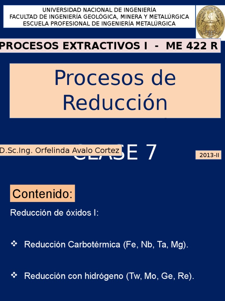 Reduccin de xidos I: