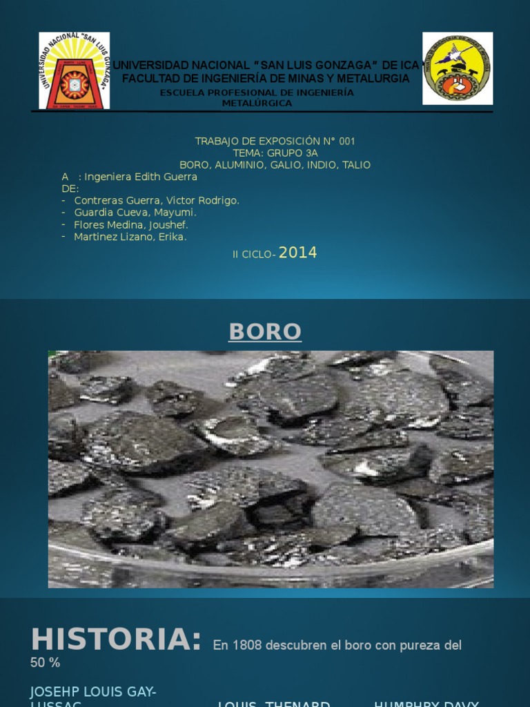 BORO, ALUMINIO, GALIO, INDIO, TALIO