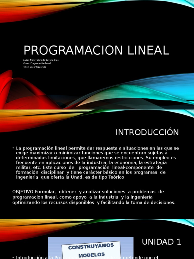 es un sinnimo de planeacin. As, la programacin lineal trata la
