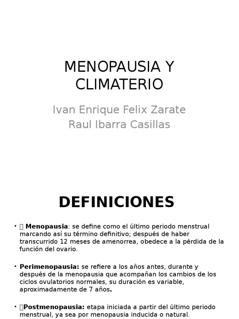 Climaterio: periodo de tiempo en que una mujer pasa de la