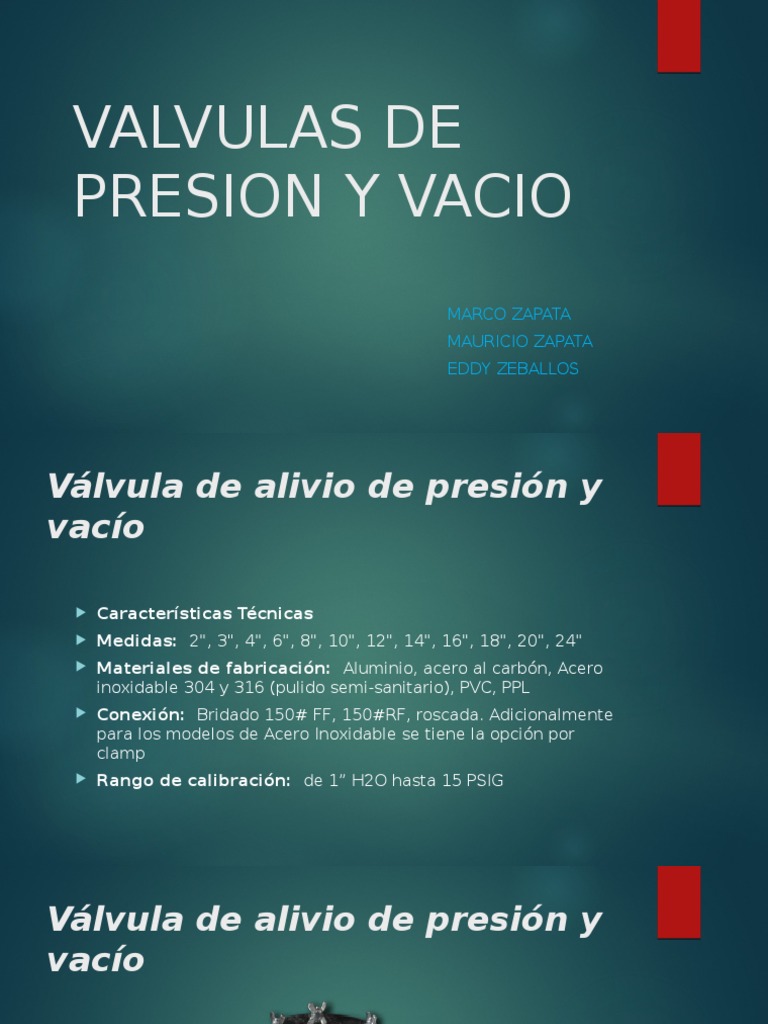Las vlvulas de alivio de presin vaco son equipos de seguridad