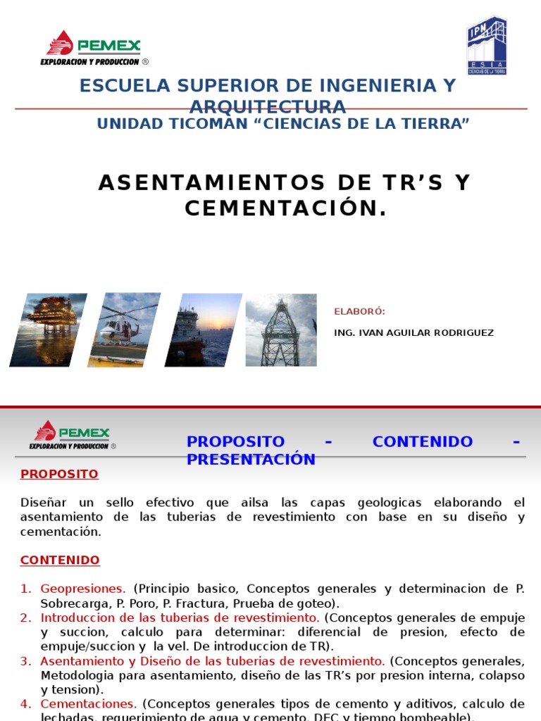 4. Cementaciones. (Conceptos generales tipos de cemento y aditivos, calculo de