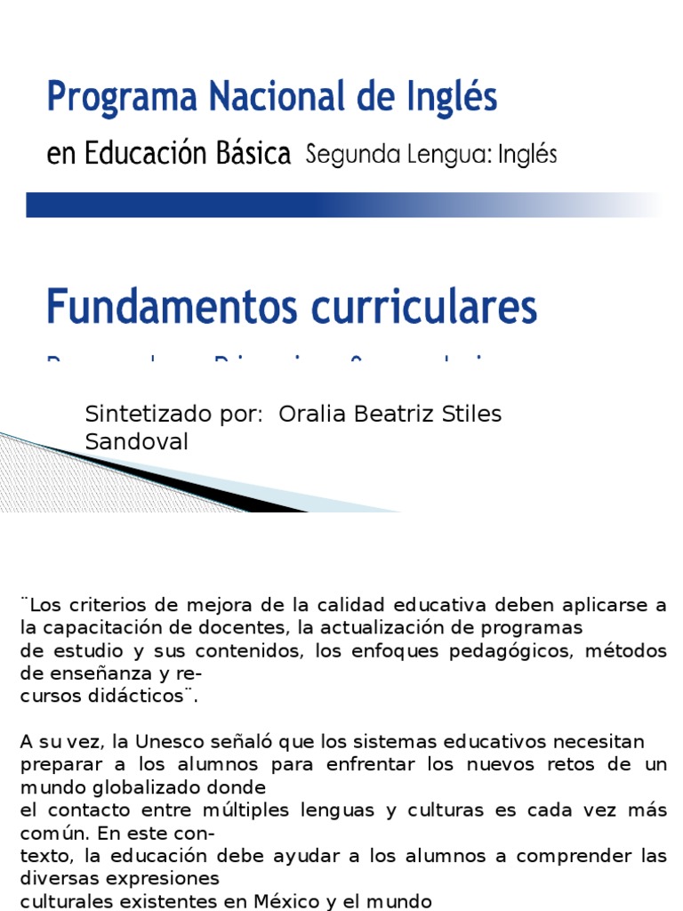 El propsito de la enseanza del Ingls para la Educacin Bsica es que los