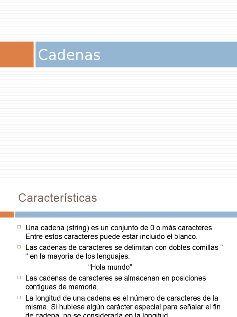 Una cadena (string) es un conjunto de 0 o ms caracteres.