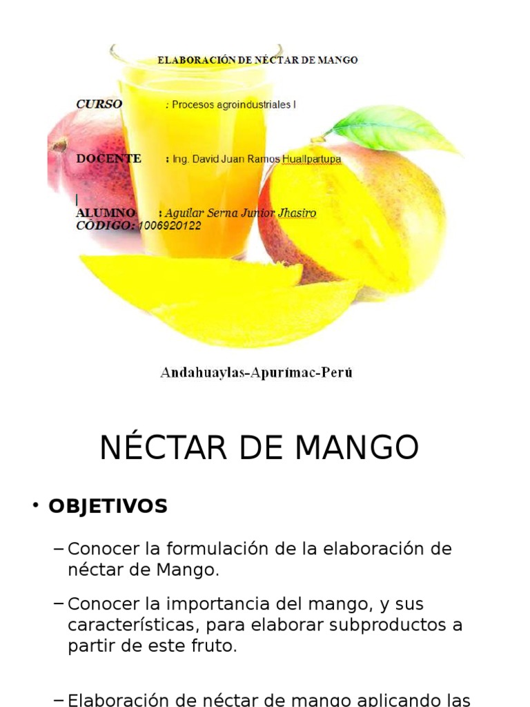 Elaboracin de nctar de mango aplicando las