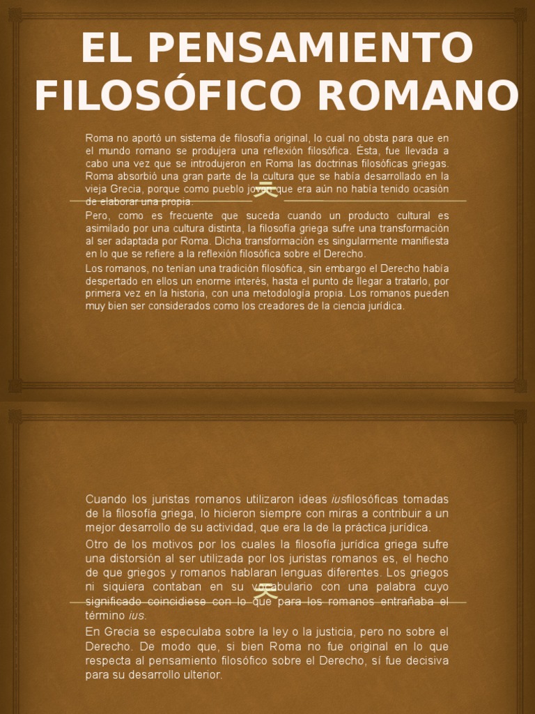Los romanos, no tenan una tradicin filosfica, sin embargo el Derecho haba
