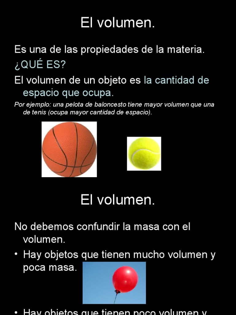 Por ejemplo: una pelota de baloncesto tiene mayor volumen que una