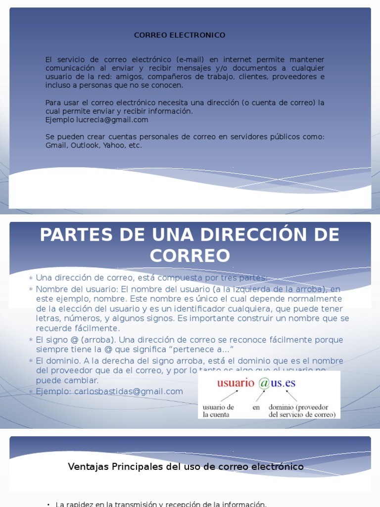 Para usar el correo electrnico necesita una direccin (o cuenta de correo) la