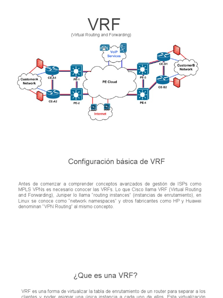 MPLS VPNs es necesario conocer las VRFs. Lo que Cisco llama VRF (Virtual Routing