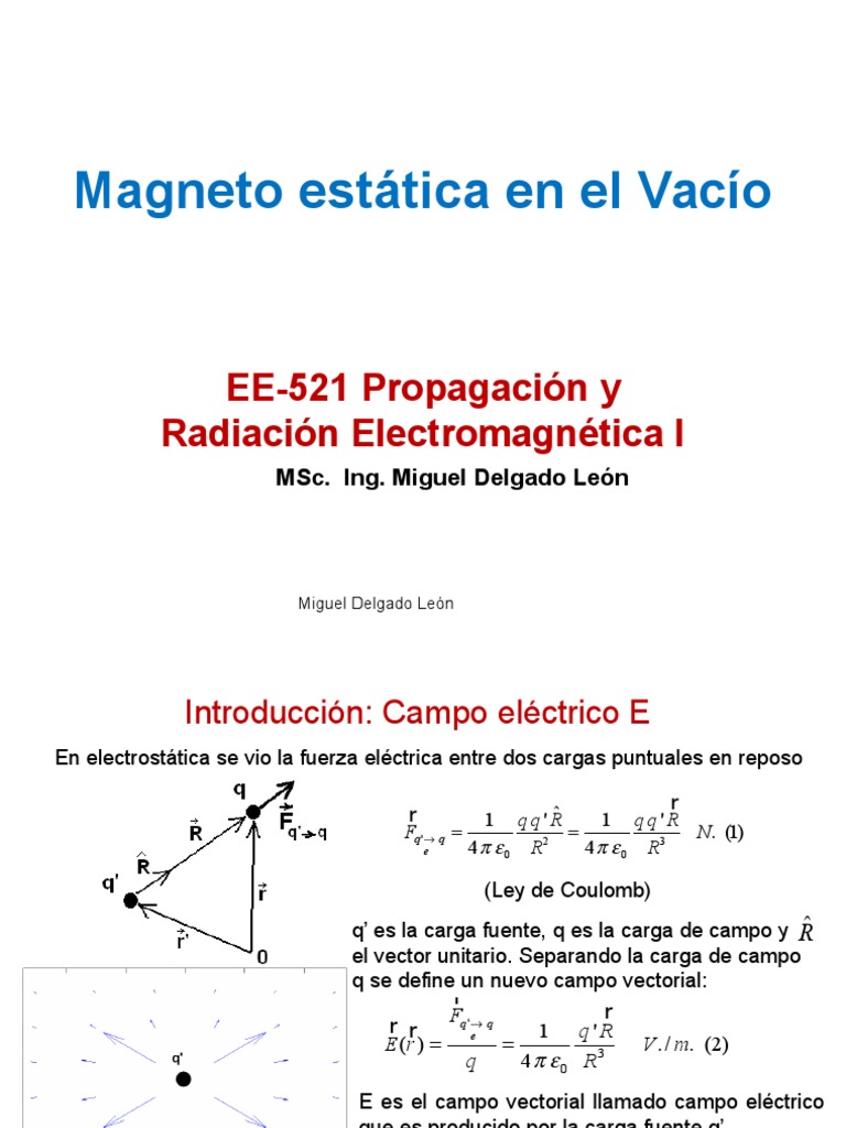 En electrosttica se vio la fuerza elctrica entre dos cargas puntuales en reposo