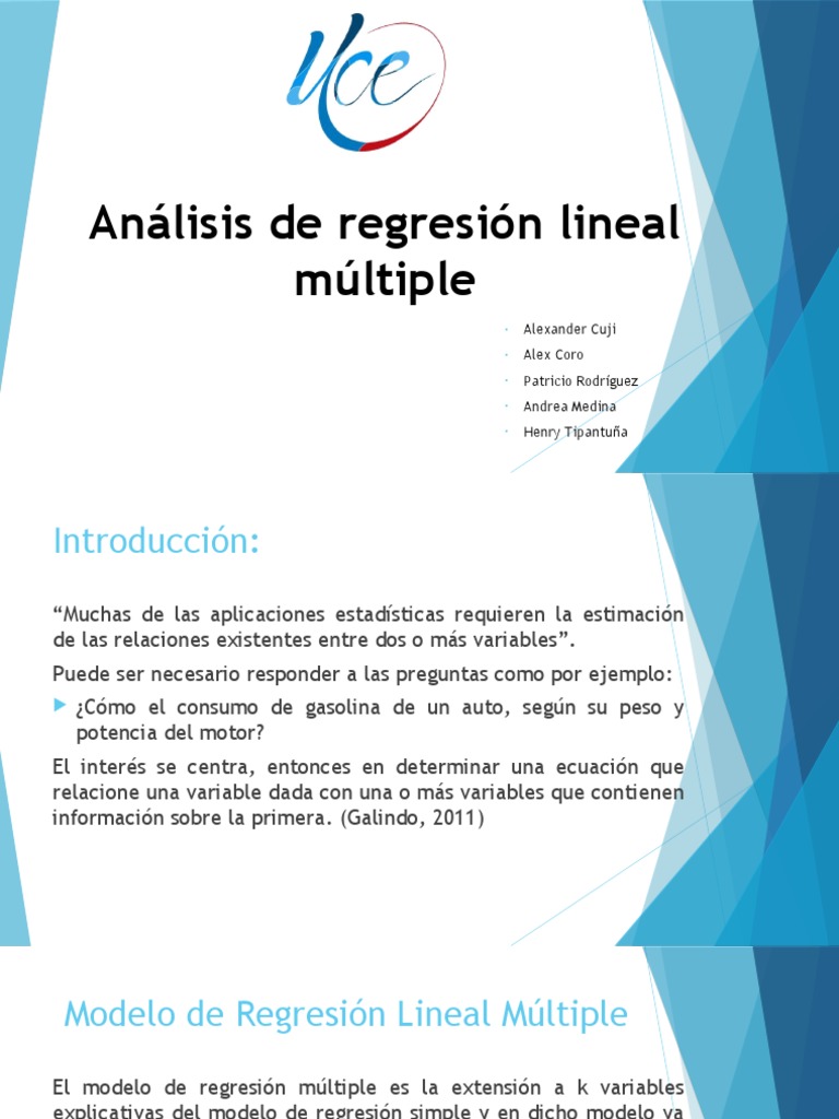 Mltiple Tiene una nica ecuacin y varias variables explicativas