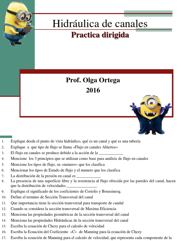 18. Escriba la ecuacin de Manning para el calculo de Caudal, que representa cada componente de la