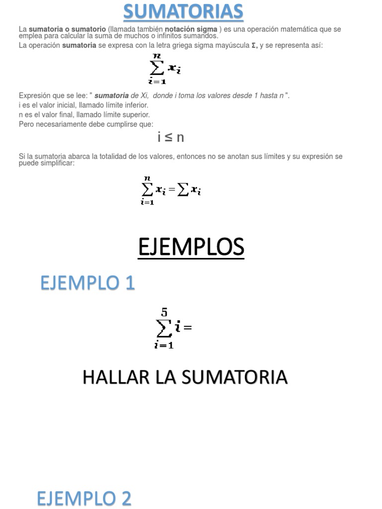 La operacin sumatoria se expresa con la letra griega sigma mayscula , y se representa as: