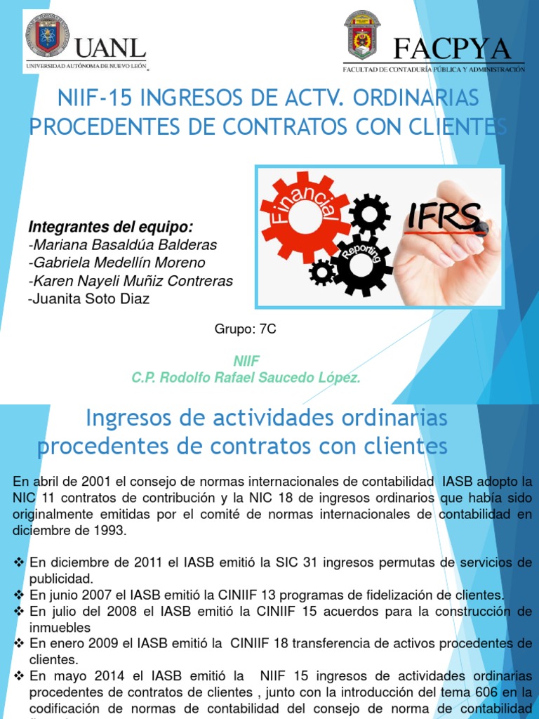 En mayo 2014 el IASB emiti la NIIF 15 ingresos de actividades ordinarias