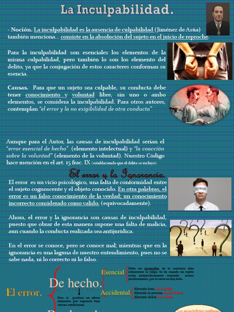 Ahora, el error y la ignorancia son causas de inculpabilidad,