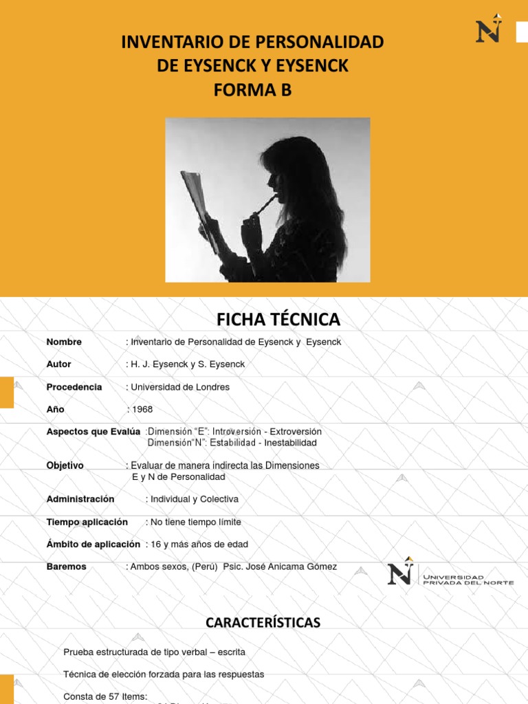 Nombre : Inventario de Personalidad de Eysenck y Eysenck