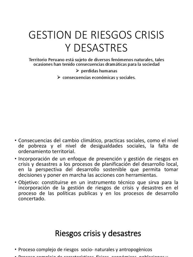 1. La consideracin bsica de que riesgos en crisis y desastres se