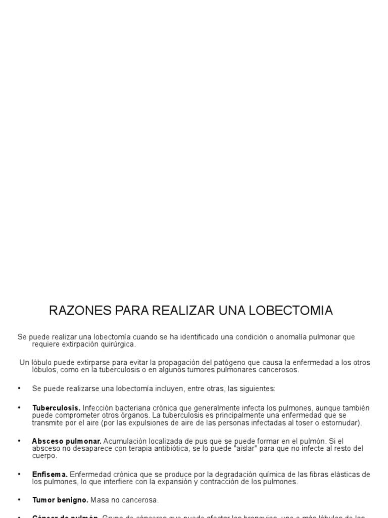 RAZONES PARA REALIZAR UNA LOBECTOMIA