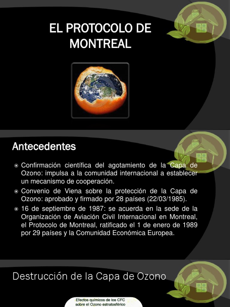 el Protocolo de Montreal, ratificado el 1 de enero de 1989