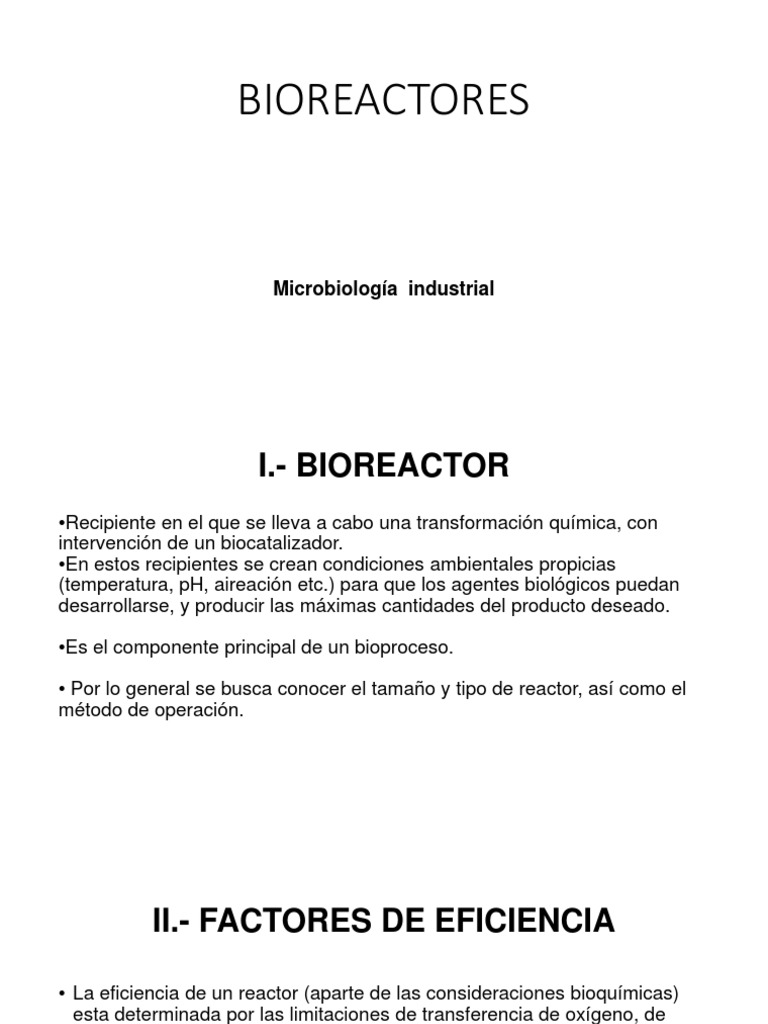 La eficiencia de un reactor (aparte de las consideraciones bioqumicas)