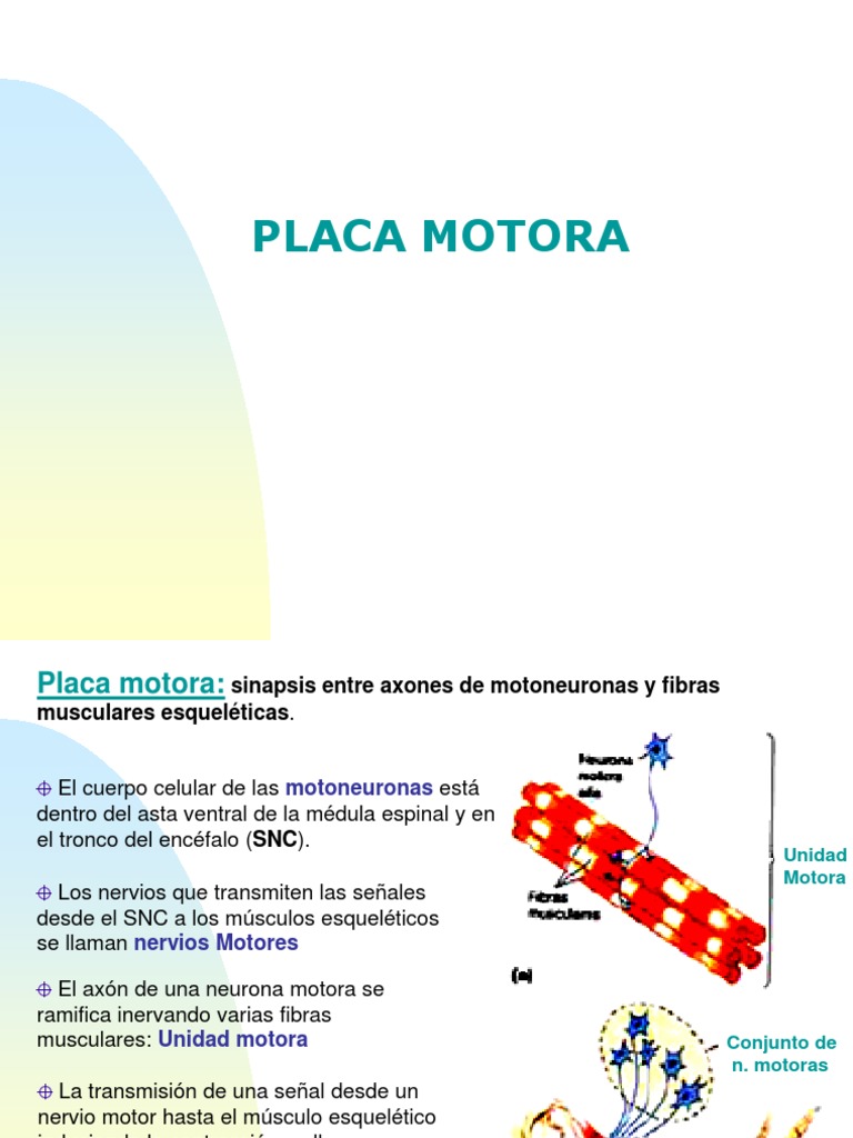 Placa motora: sinapsis entre axones de motoneuronas y fibras