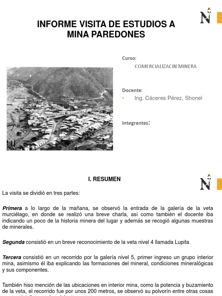 Tambin hiso mencin de las ubicaciones en interior mina, como la potencia y buzamiento
