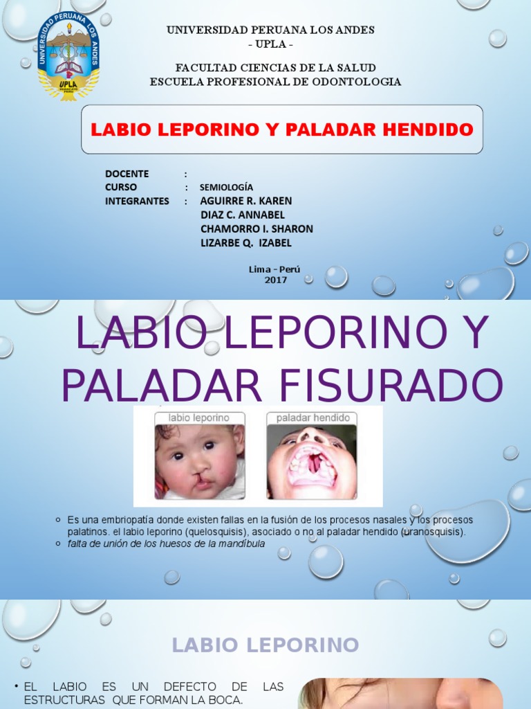 palatinos. el labio leporino (quelosquisis), asociado o no al paladar hendido (uranosquisis).