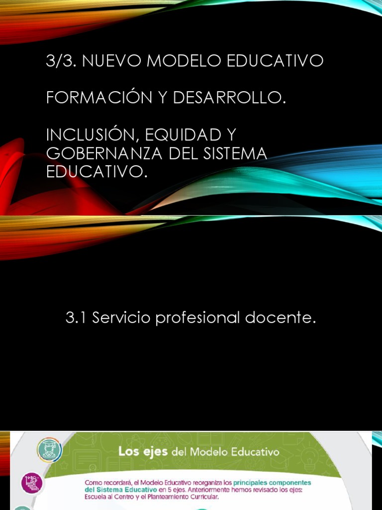 3/3. NUEVO MODELO EDUCATIVO, Formación y Desarrollo. Inclusión, Equidad y Gobernanza Del Sistema Educativo.