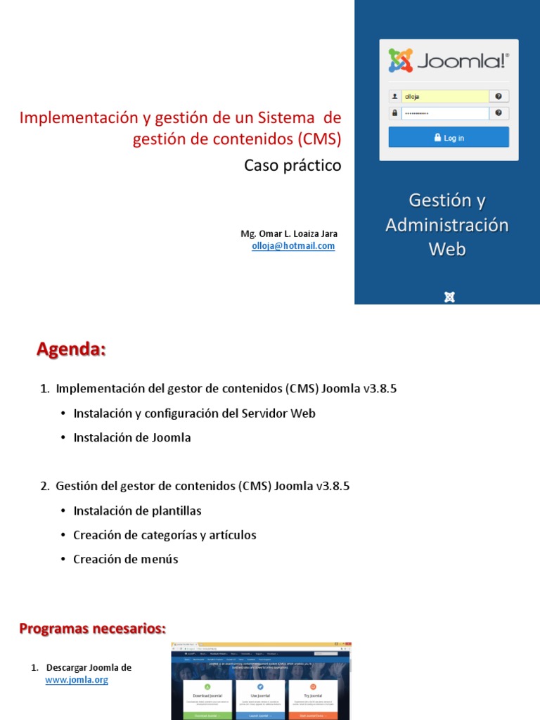 1. Implementación del gestor de contenidos (CMS) Joomla v3.8.5