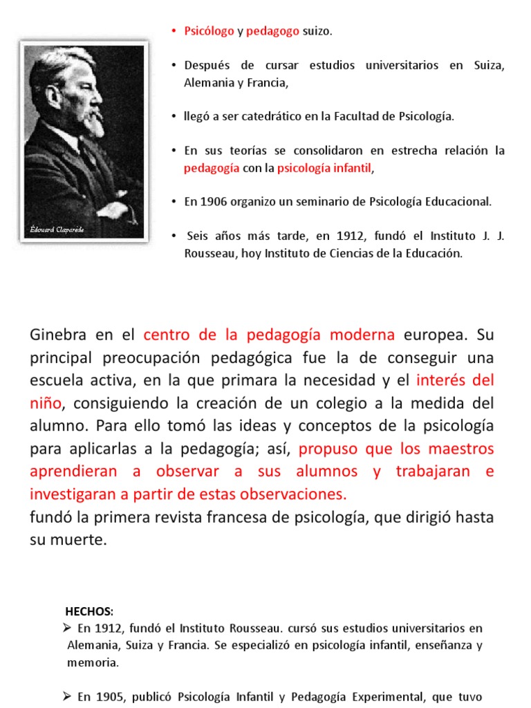 En 1912, fundó el Instituto Rousseau. cursó sus estudios universitarios en