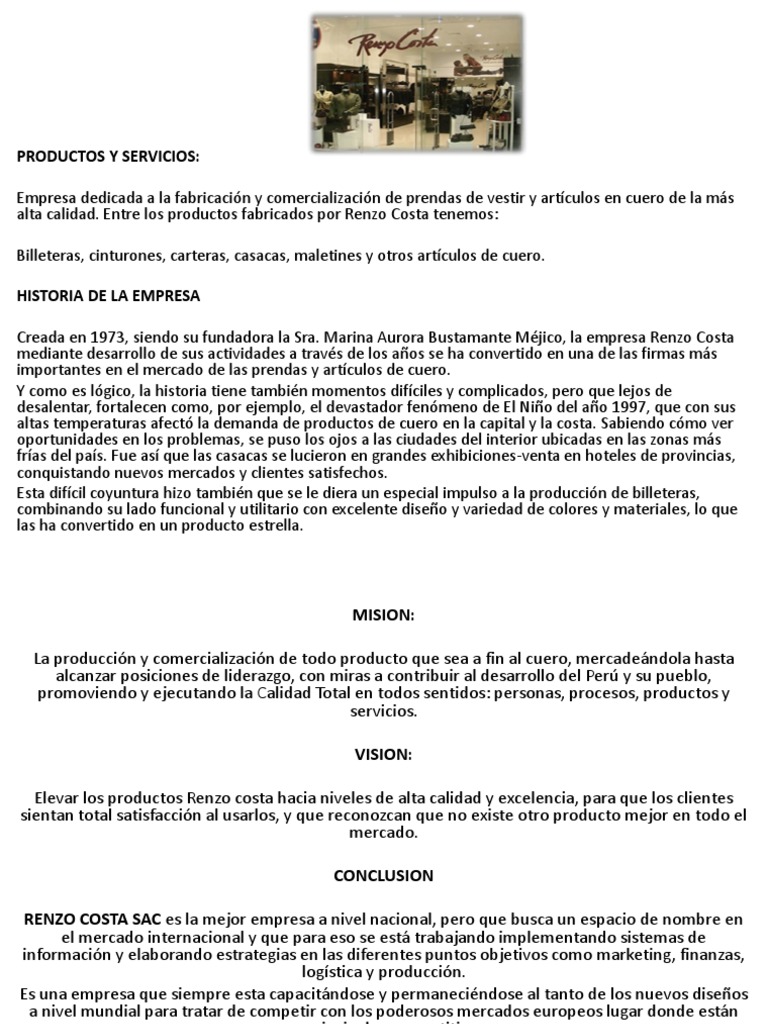 RENZO COSTA SAC es la mejor empresa a nivel nacional, pero que busca un espacio de nombre en
