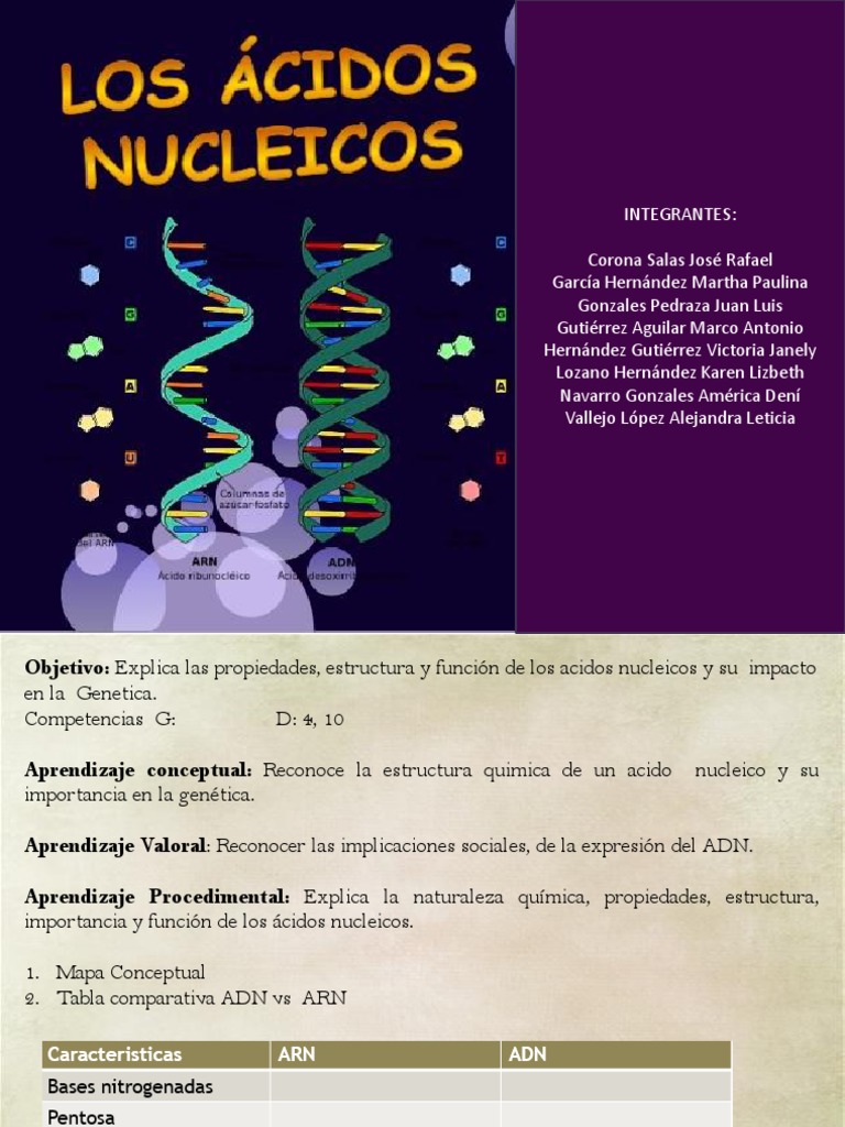 Objetivo: Explica las propiedades, estructura y función de los acidos nucleicos y su impacto