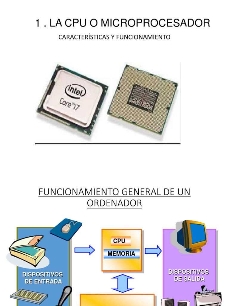 • La unidad central de proceso o CPU es el verdadero motor de un ordenador.