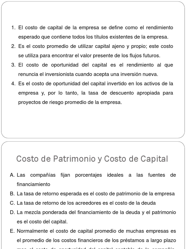 2. Es el costo promedio de utilizar capital ajeno y propio; este costo