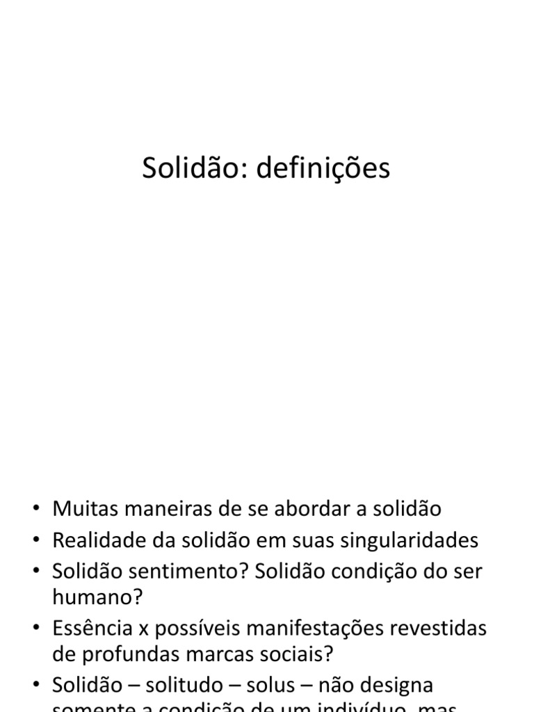 • Predefmir a solidão implicaria não a poder pensar fora dos limites