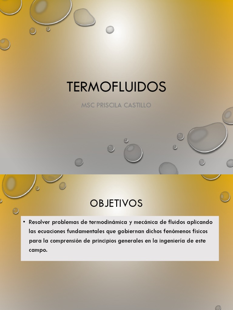 • Resolver problemas de termodinámica y mecánica de fluidos aplicando